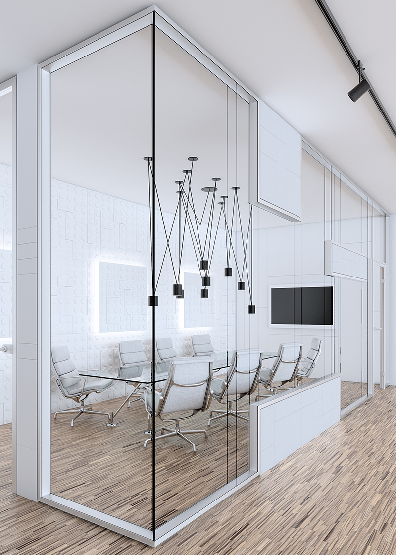 Din sticla pot sa fie realizate interiorare unice adaptate in functie de caracteristicile fiecarui caz in parte si avand avantajul reducerii termenelor de executie comparativ cu variantele clasice de compartimentare.